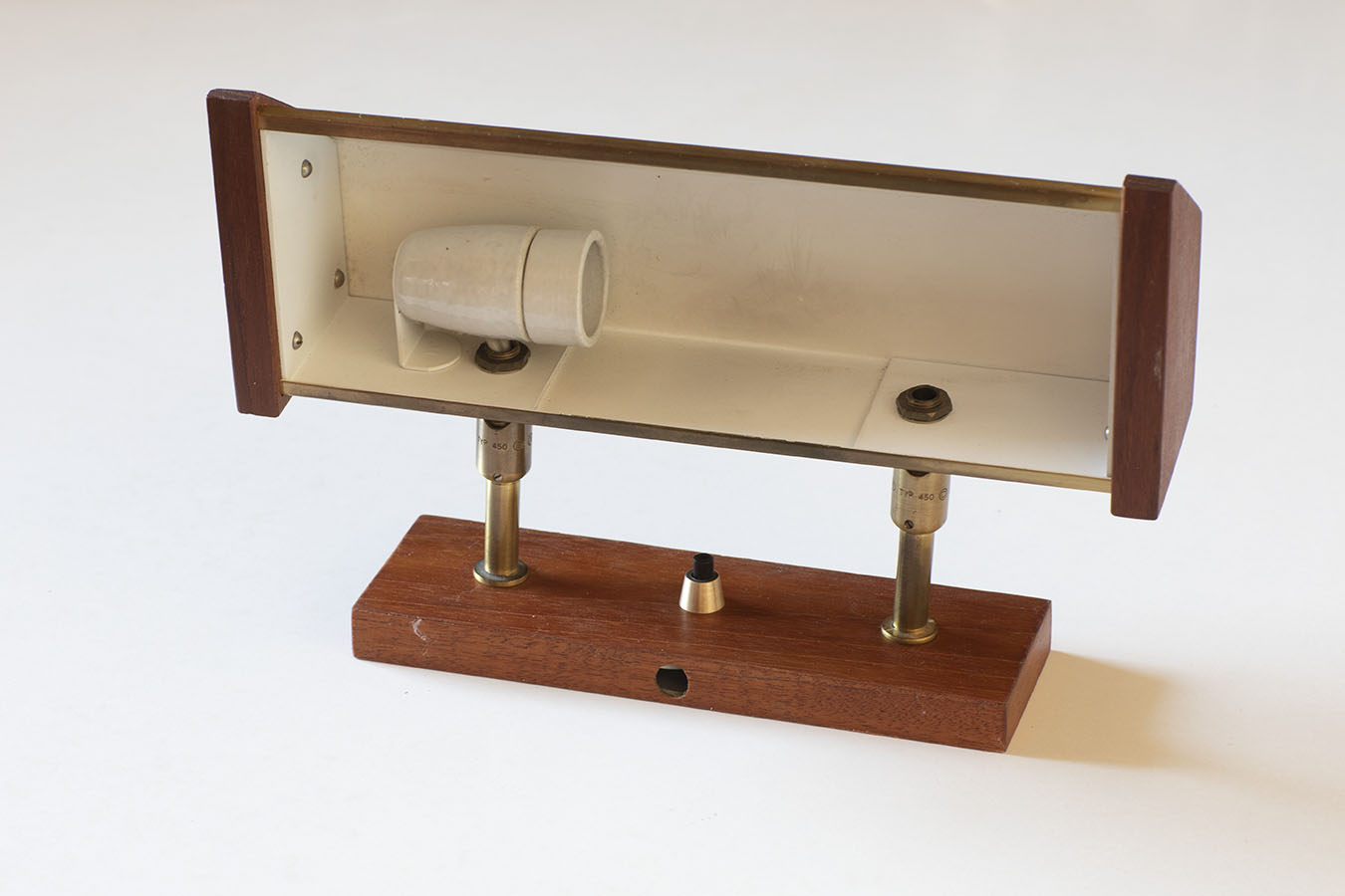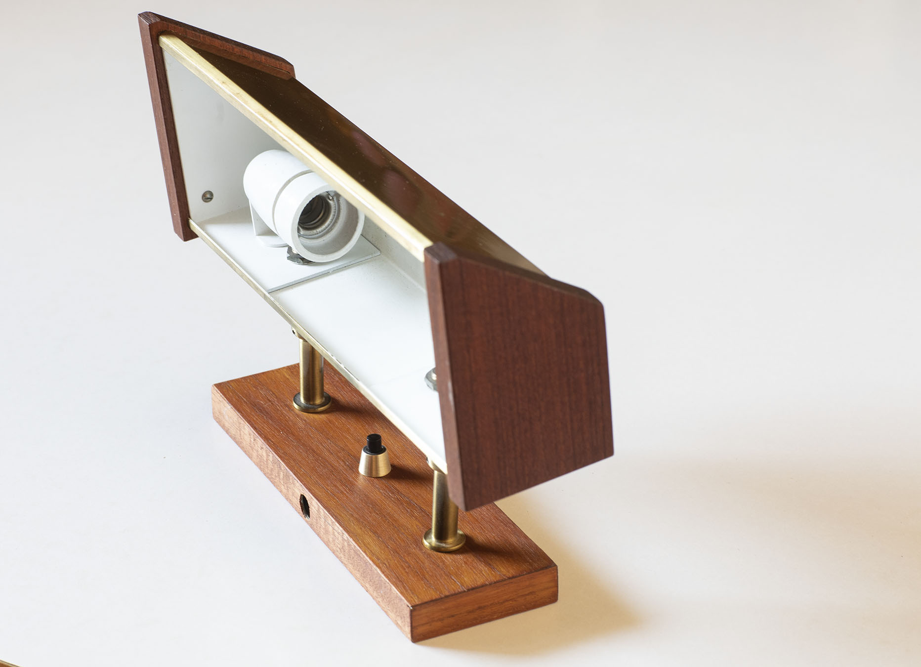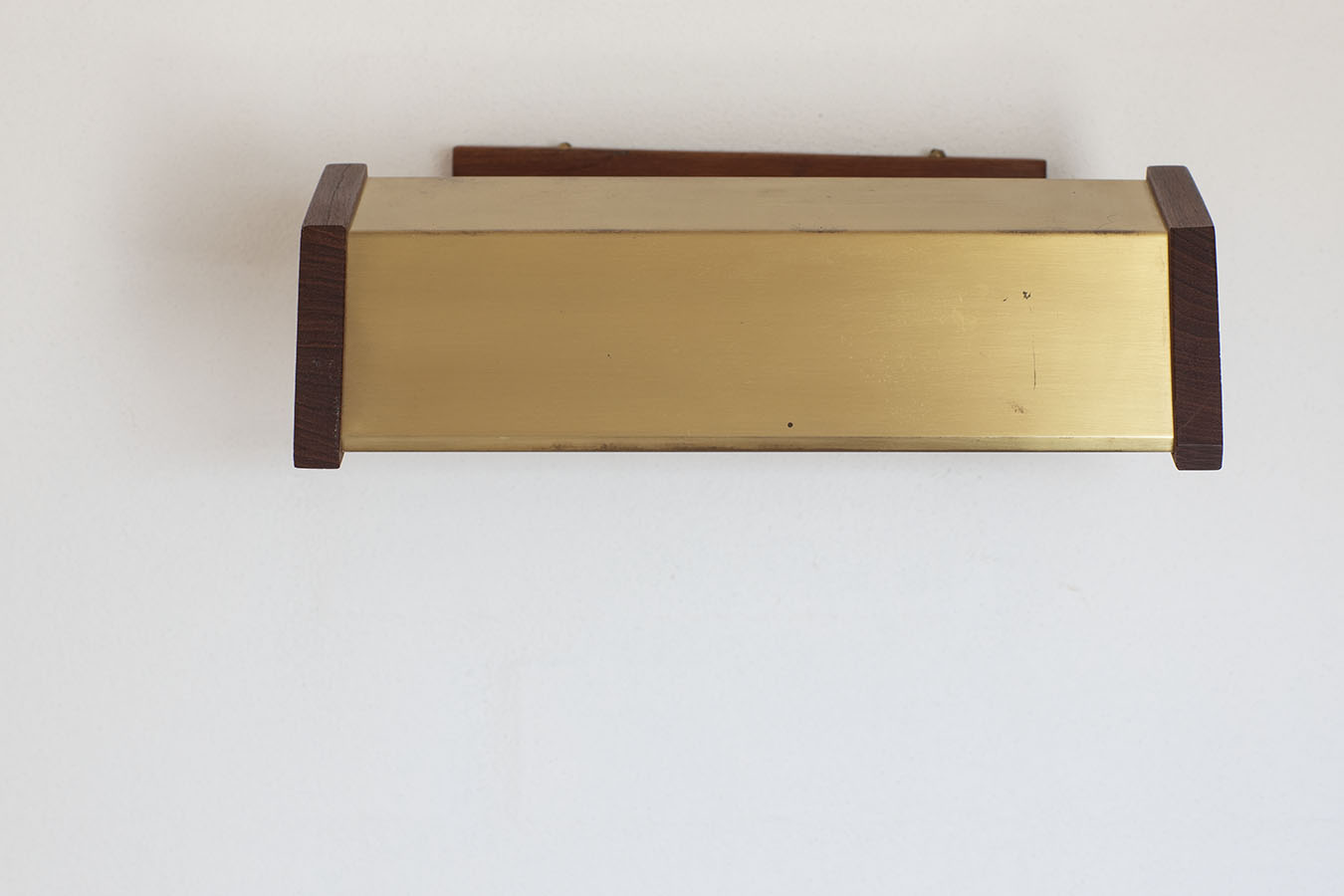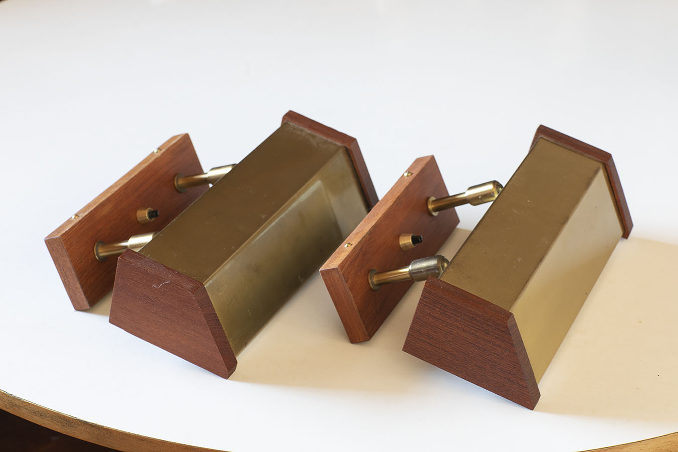 Dwa kinkiety vintage. Projekt Jo Hammerborg dla Fog&Morup. Fornir teakowy i mosiądz. Kinkiety po renowacji. Fornir bez ubytków. Cena za parę.