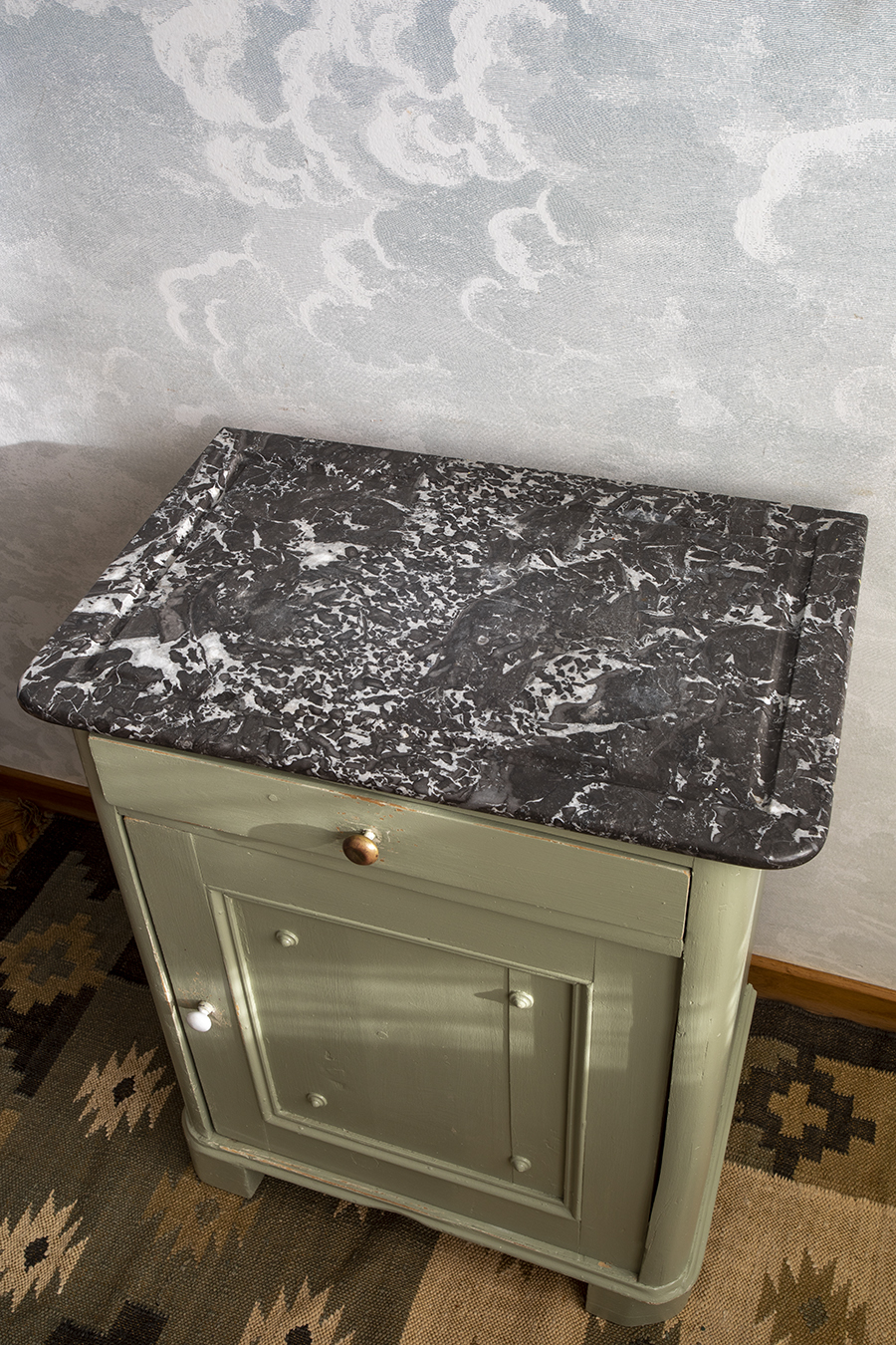 Szafka vintage z kamiennym blatem